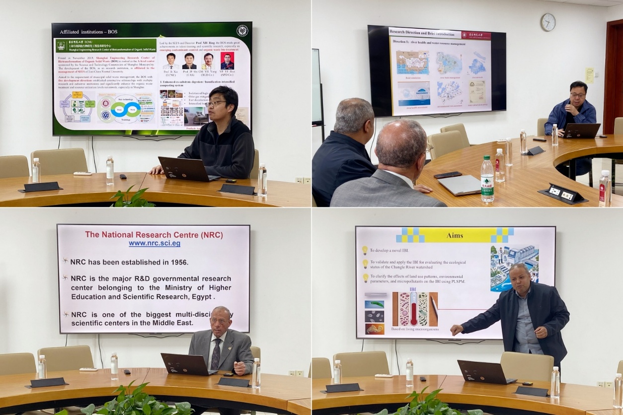 为了增进中国与埃及学者互动交流,推动环境病原微生物与废弃物资源化国际合作研究,2026年4月8日,上海有机固废生物转化工程技术研究中心(以下简称“中心”)与埃及国家研究中心(National Research Centre, Egypt)于资环楼联合举办了交流研讨会。埃及国家研究中心Ahmad Z. Al-Herrawy教授与Mahmoud Gad教授、中心谢冰教授团队与杨凯教授团队应邀出席会议。此次研讨会在双方共同承担的国家重点研发计划政府间国际科技创新合作项目框架下开展,标志着双方在环境健康与可持续发展领域的合作进入实质性推进阶段。